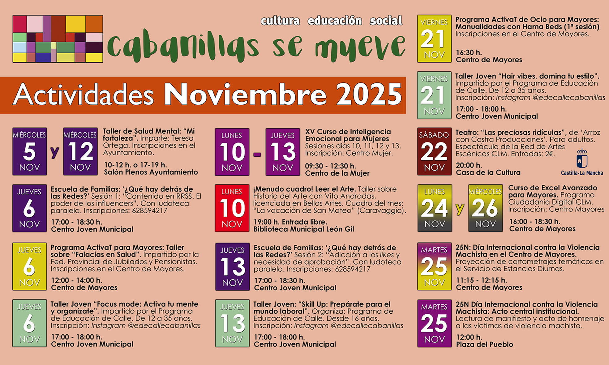 Disponible el cartel "Cabanillas se mueve" con las actividades socioculturales de noviembre de 2025 en Cabanillas del Campo