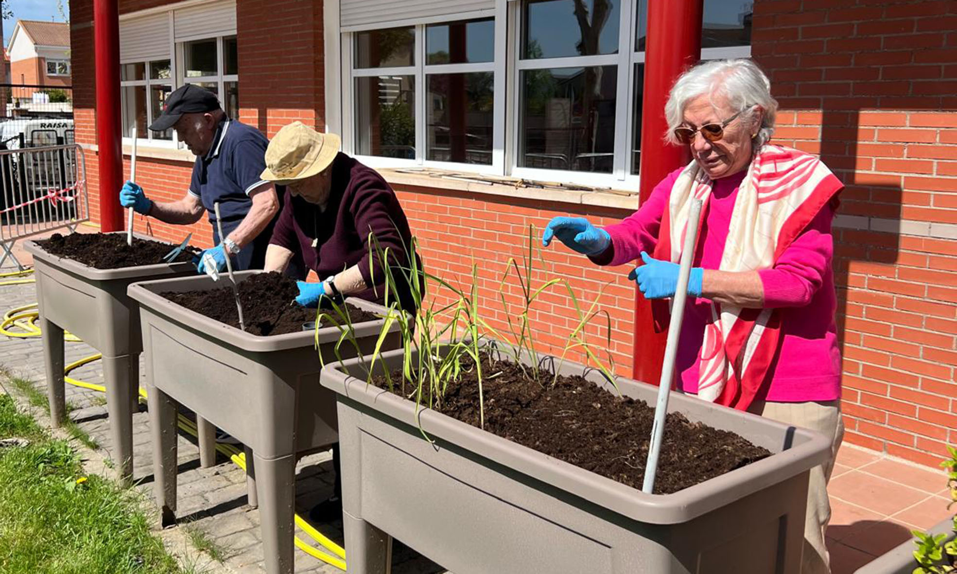 El buen tiempo permite a los usuarios y usuarias del SED comenzar el trabajo en exteriores, con los maceteros en altura adaptados para esta actividad