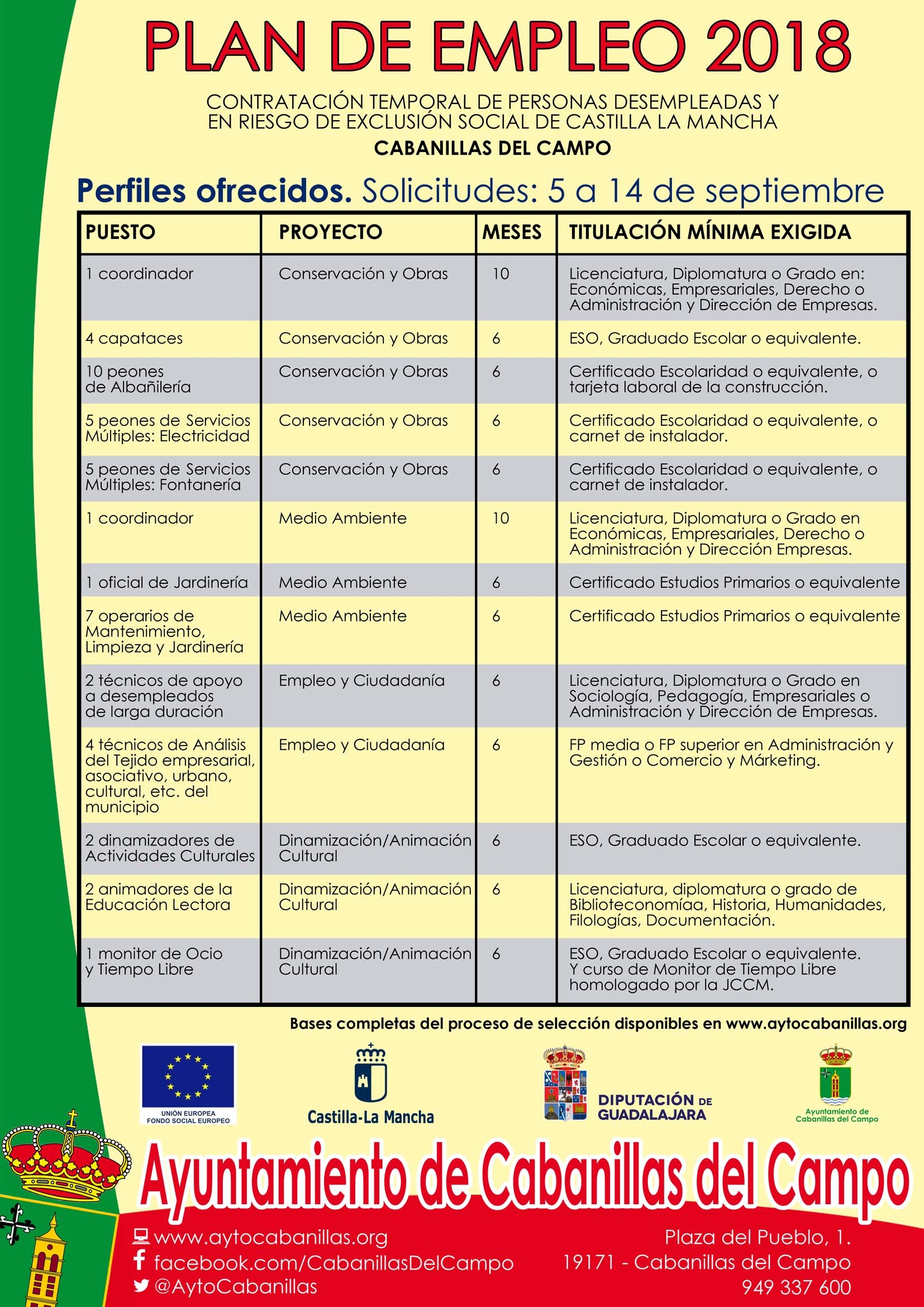Las listas de las 5 contrataciones del proyecto de Dinamización y Animación Cultural pueden reclamarse hasta el 28 de septiembre, las del resto de contratos, del 27 de septiembre al 1 de octubre