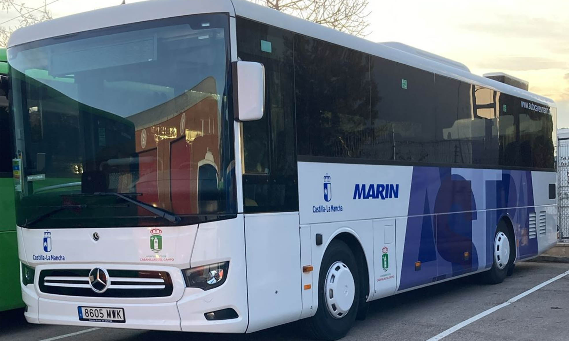 El consejero de Fomento y el alcalde presentan los nuevos autocares de "Marín" para el Astra de Cabanillas. Desde que se renovaron las líneas, el incremento de viajeros ha sido del 36%