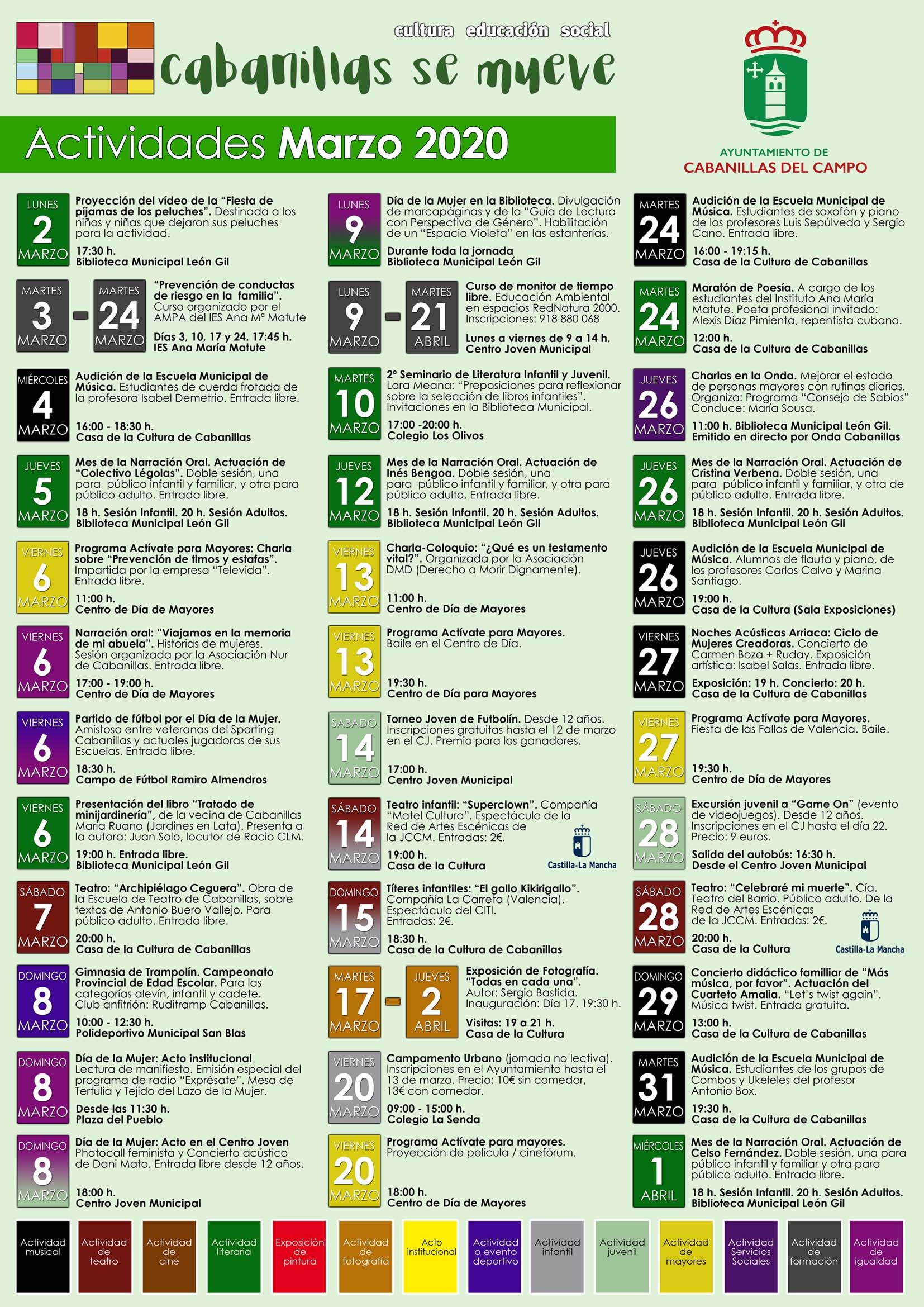 CARTEL CON LA PROGRAMACIÓN SOCIOCULTURAL DE CABANILLAS DEL CAMPO EN MARZO DE 2018