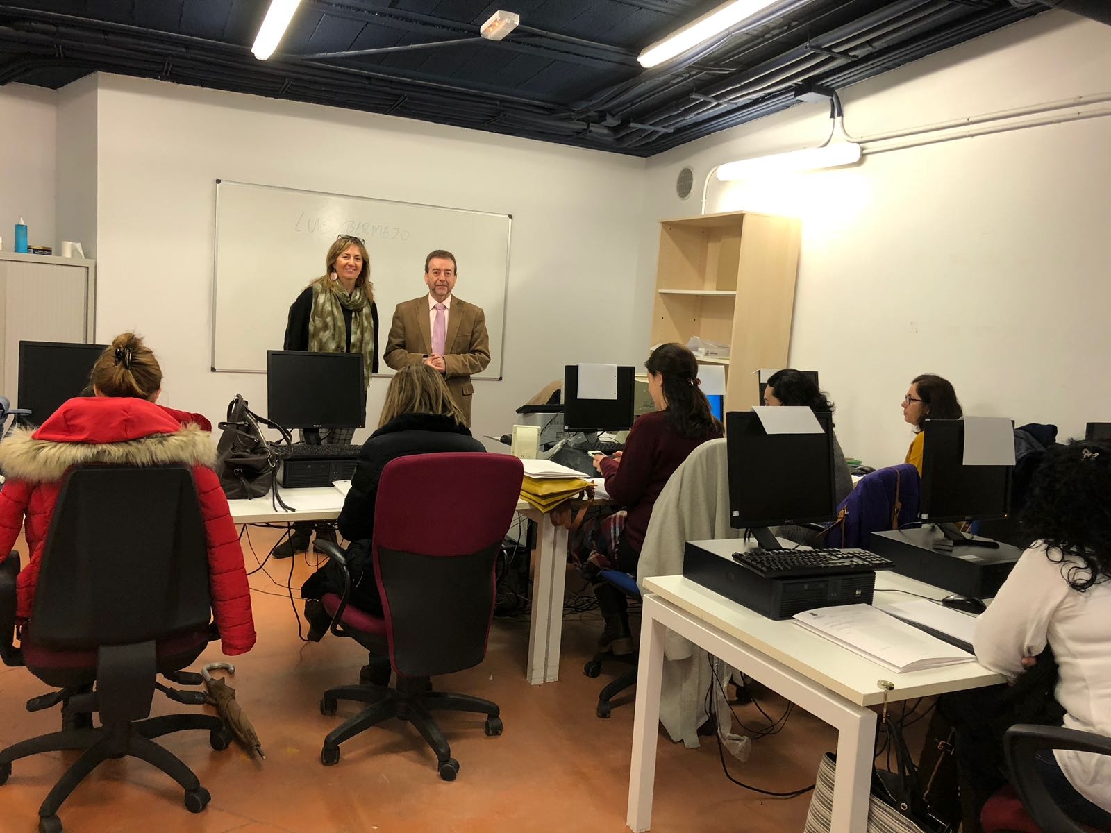 La concejala y la técnico del Servicio de Empleo, Mari Carmen Martínez y Laura Romera, recibieron a los alumnos y alumnas en el Centro Joven