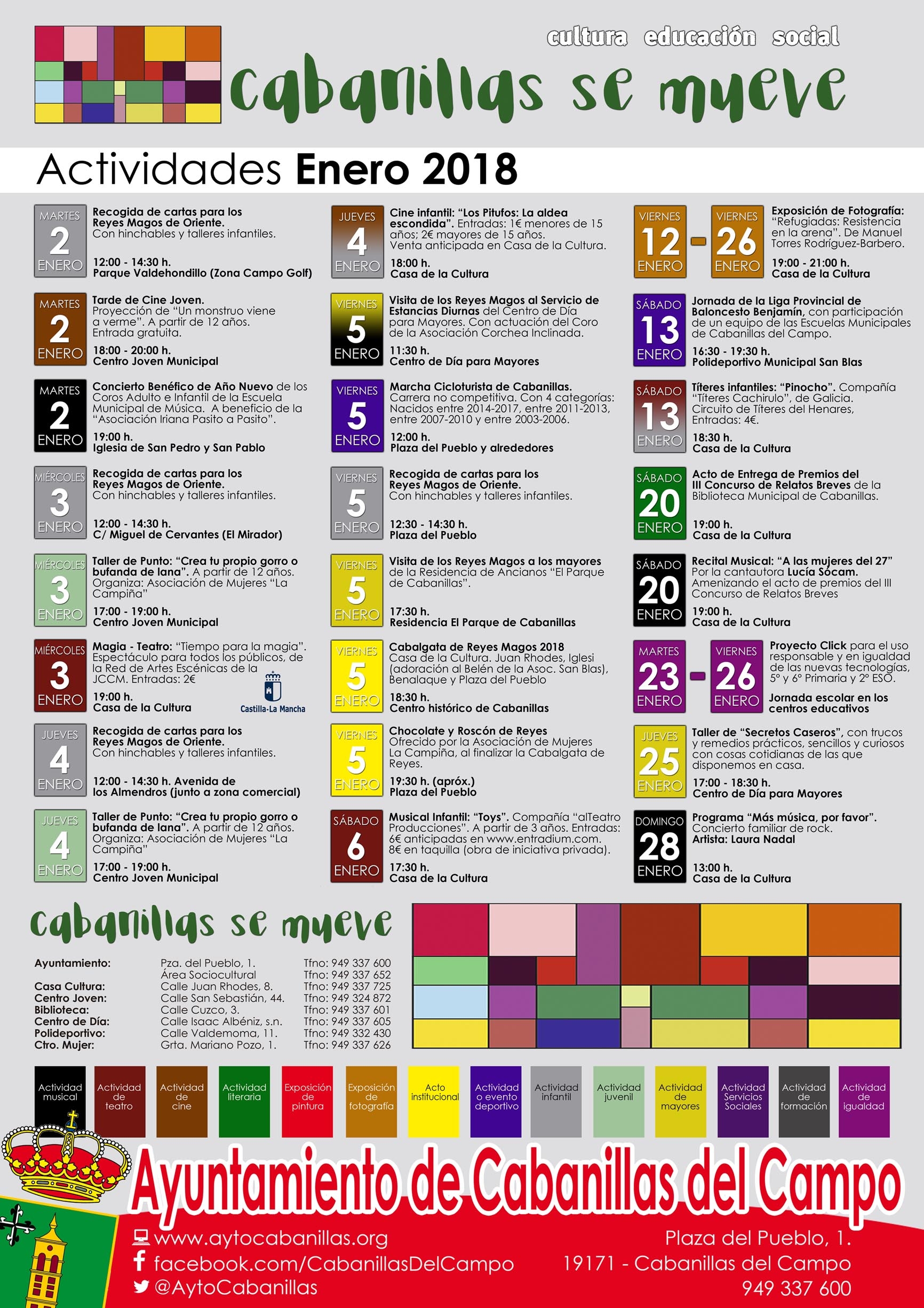 Disponible el cartel con la actividad sociocultural de Cabanillas del Campo en enero de 2018