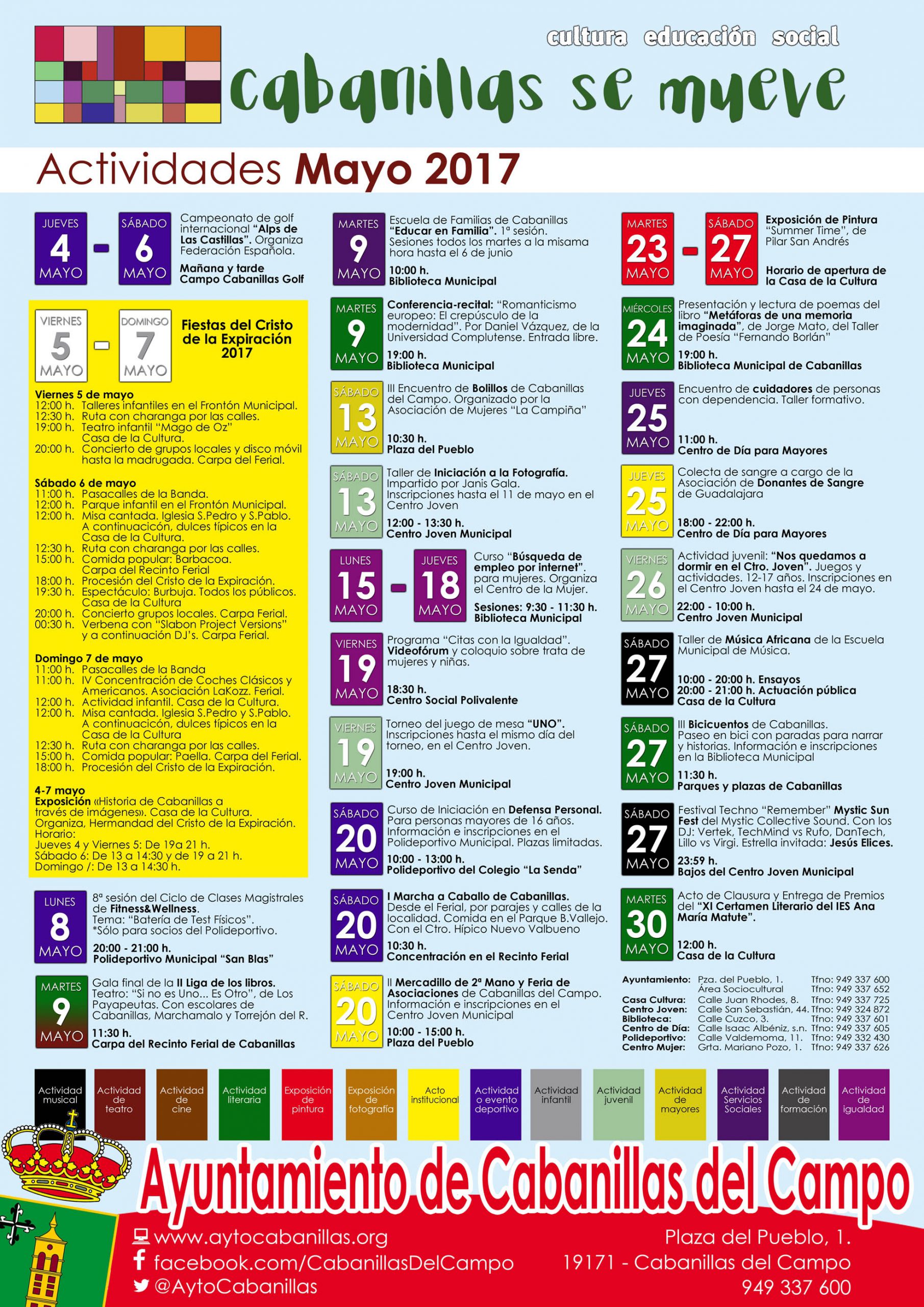 Cartel de la actividad sociocultural en Cabanillas del Campo en mayo de 2017