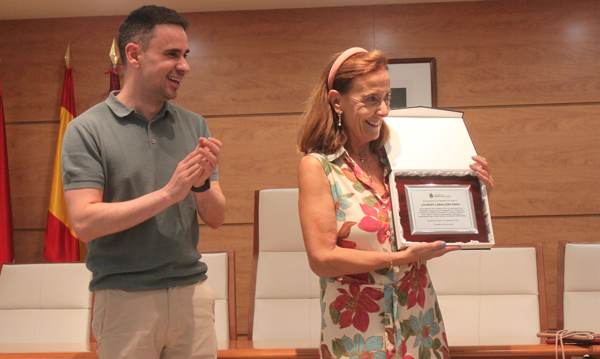 Alcalde, concejales y la plantilla del Ayuntamiento rinden un reconocimiento a la conserje, al final de su última jornada laboral en el consistorio