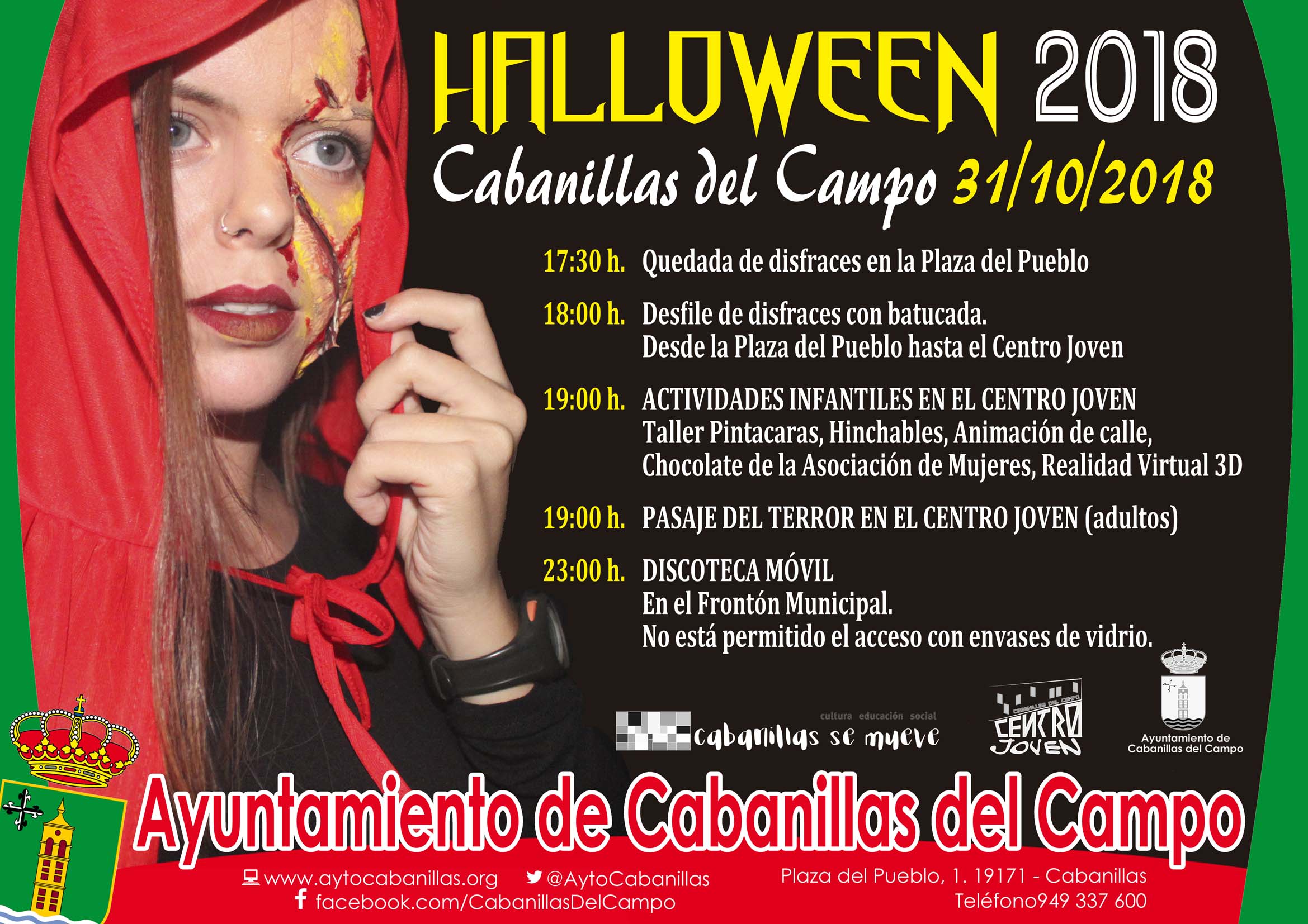 Las malas previsiones meteorológicas, que aventuran lluvia y frío para toda la tarde-noche del miércoles 31 de octubre, han obligado al Ayuntamiento de Cabanillas del Campo a plantear algunos cambios respecto al programa inicialmente previsto para la celebración de la fiesta de Halloween, eliminando algunas de las actividades, y trasladando la ubicación de otras.