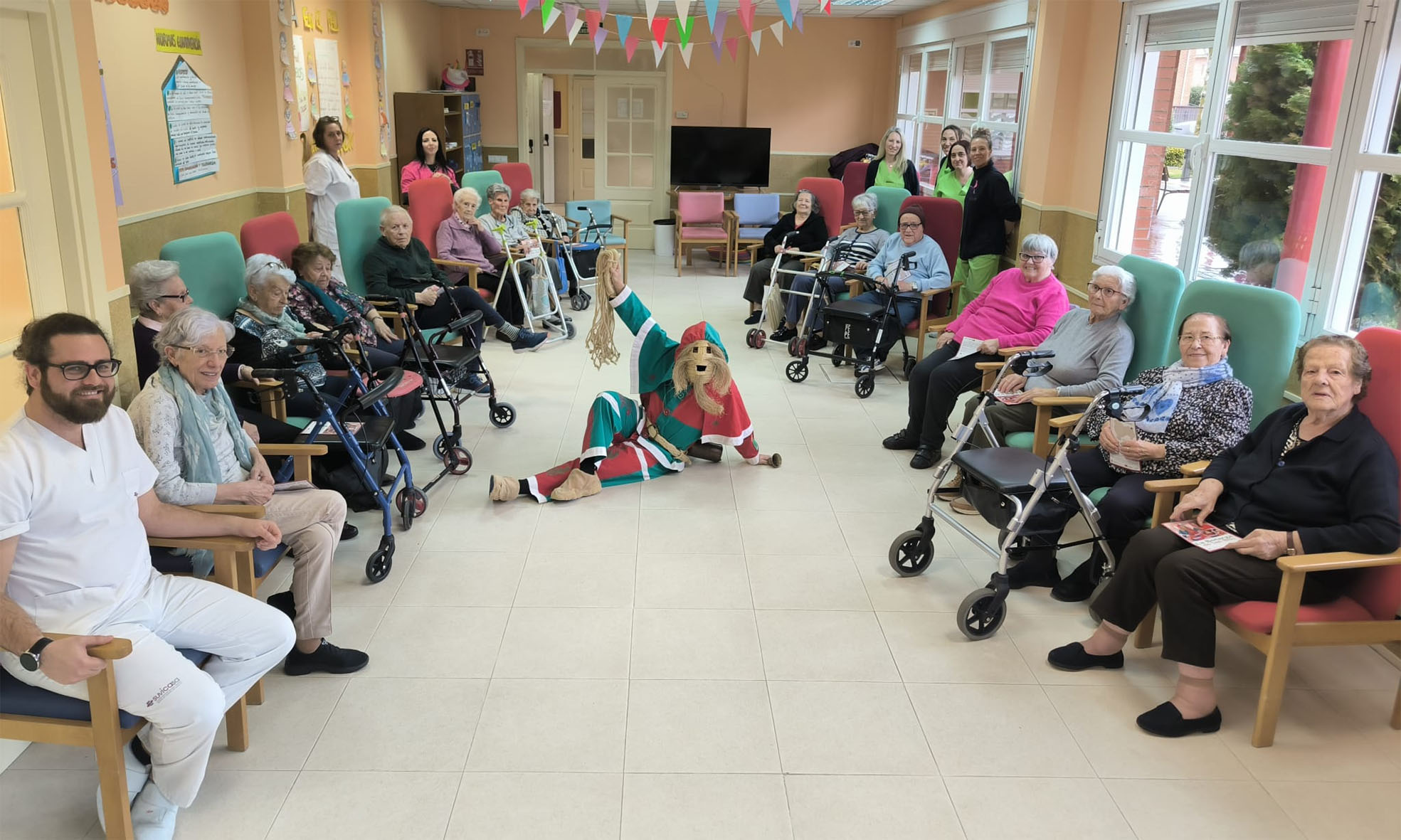 La cita comenzó a las 10:30 h. de la mañana en el SED. Primero, el alcalde, José García Salinas; el concejal de Festejos, Luis Blanco; y los ediles del área de Servicios Sociales, Abigail Cordero y Javier Inés, saludaron a a las personas usuarias del centro, para felicitarles las fiestas patronales. Luego, Luis Blanco, junto a la presidenta de la Asociación de Mujeres «La Campiña», Julia Moratilla, explicaron a los ancianos y ancianas las particularidades de este personaje de la Botarga de San Blas, y cómo fue el proceso de recuperación que se culminó hace cuatro años. La botarga entretuvo a los usuarios y usuarias con sus bailes y muecas, alegrándoles la mañana y rompiendo la rutina.