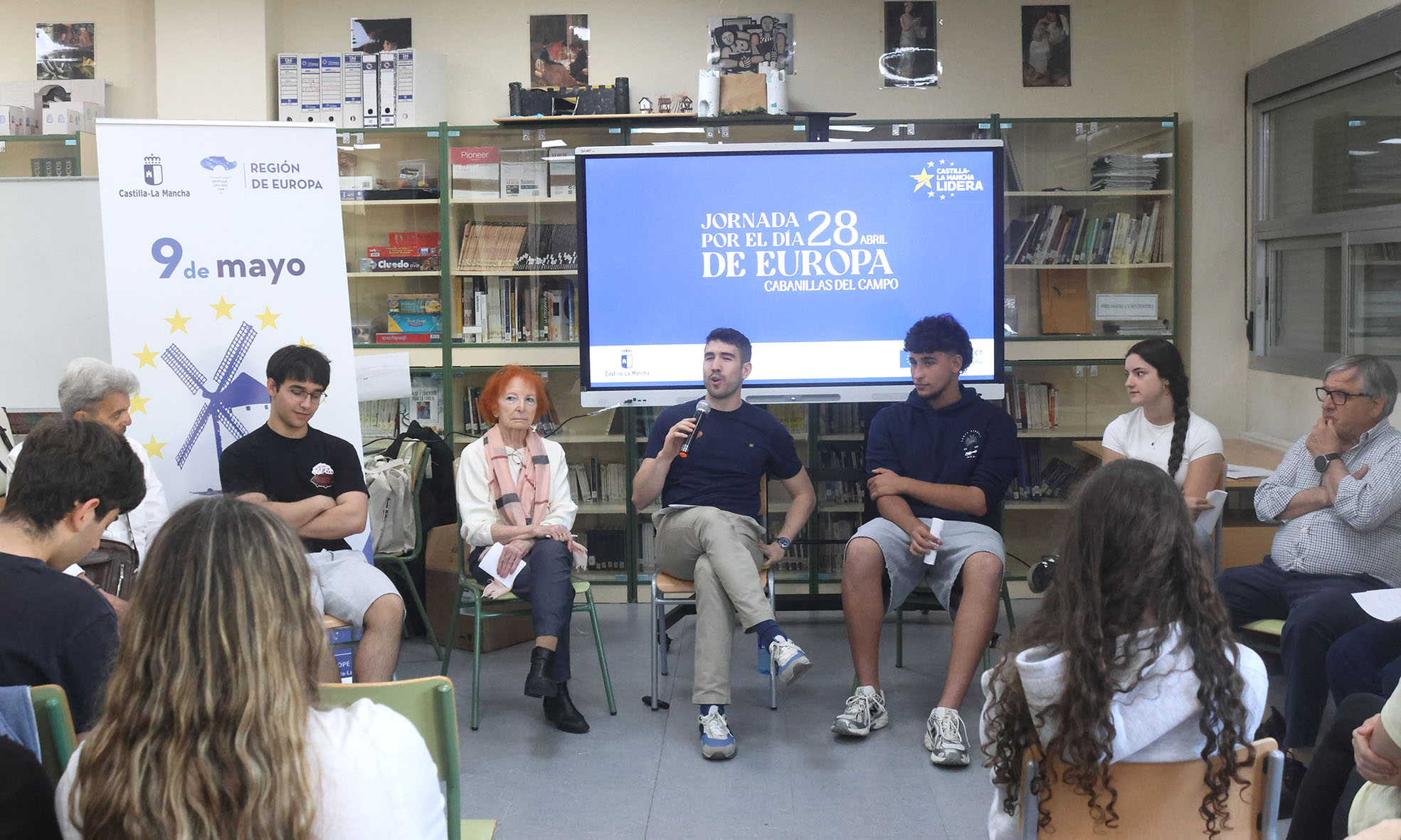 Este «Día de Europa en Castilla-La Mancha» es una cita que organiza cada año la Dirección General de Asuntos Europeos de la Junta de Comunidades, y en esta ocasión Cabanillas era una de las cinco localidades de la región elegidas para desarrollar actividades de sensibilización. Así, en Cabanillas se ha podido vivir la elaboración de un mural a cargo de niños y niñas de Primaria; un par de charlas informativas ofrecidas a adolescentes, en el Instituto Ana María Matute, y finalmente, ya por la tarde, un coloquio sobre «mujeres en la construcción europea» en el Centro Social Polivalente.