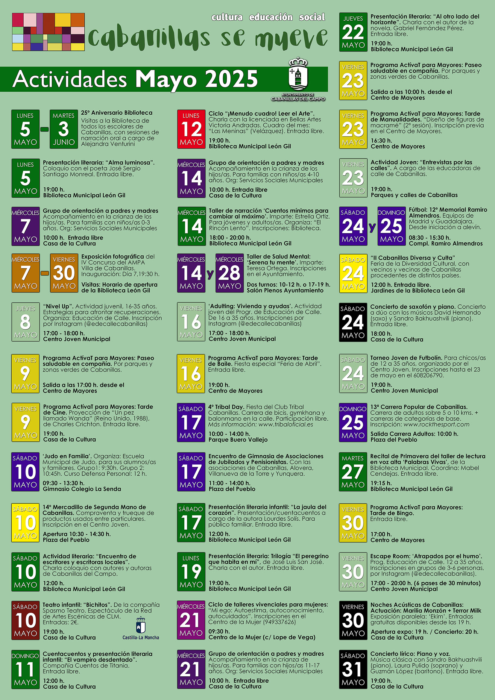 Disponible para consulta y descarga el cartel de actividades socioculturales «Cabanillas se mueve» de mayo de 2025