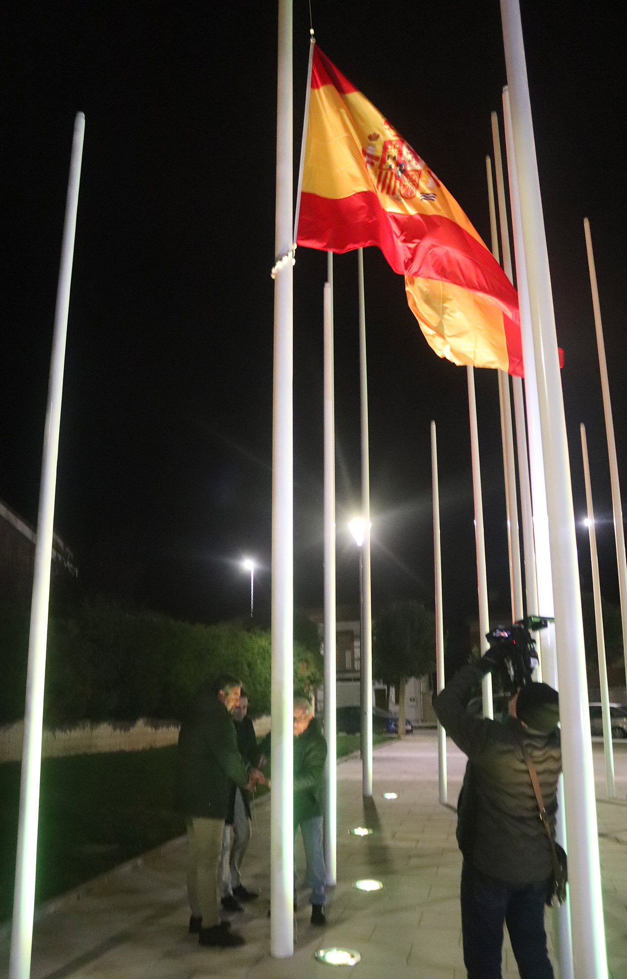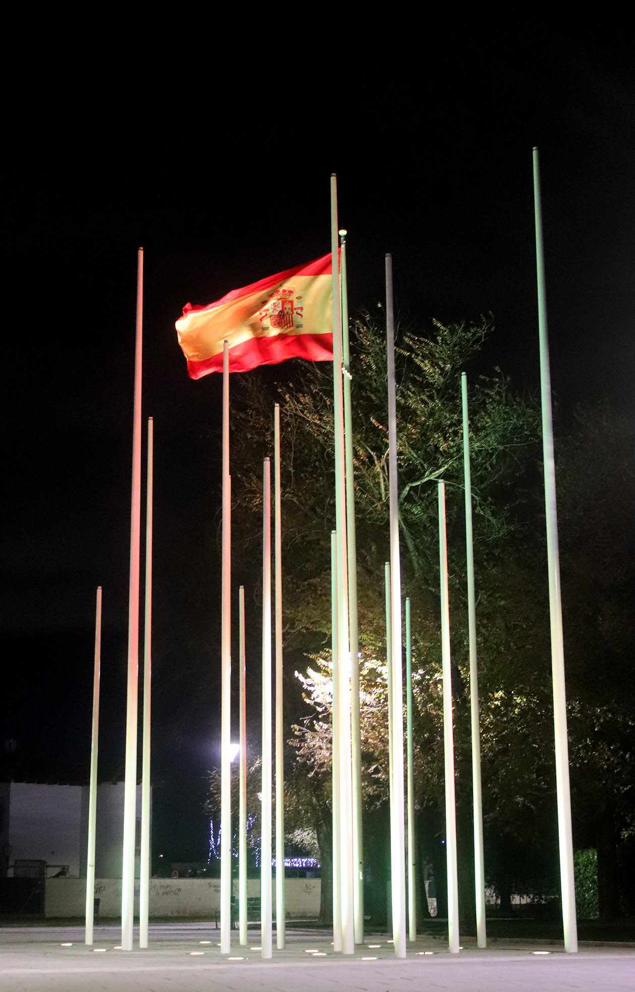 En cuanto al nuevo monumento que se inauguraba en esta cita, Salinas explicó que se trata de una instalación con 18 mástiles retroiluminados, que pretenden representar al Estado y a sus 17 comunidades autónomas. El mástil principal luce la bandera constitucional. Además, el conjunto monumental se redondea con un roble que se ha plantado en el centro de la plaza. «El roble es un árbol fuerte, robusto, que esperamos que con los años alcance un gran porte y un gran empaque, y que desarrolle una frondosa copa que dote de sombra a la estancia; simbolizando, también, el cobijo democrático que a todos nos presta el texto constitucional», señalaba Salinas. «Creo que este nuevo conjunto da realce e identidad a esta Plaza de la Constitución que también luce renovada tras la intervención que hicimos hace unos meses para solucionar los problemas que se habían generado en el pavimento», culminaba el alcalde, antes de leer el Artículo 1 de la Constitución.