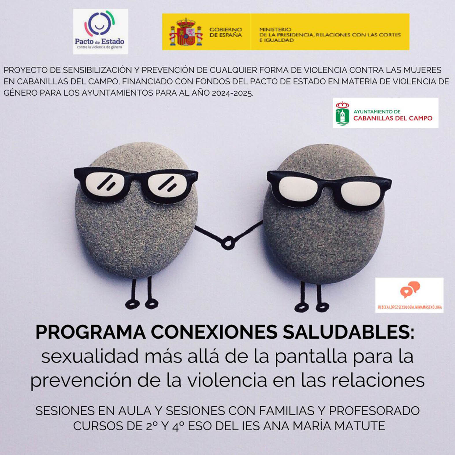 En los últimos días ha concluido una nueva edición del proyecto formativo sobre «Educación Sexual Integral» que promueve el Ayuntamiento de Cabanillas del campo, a través de la Concejalía de Igualdad y su Centro de la Mujer, en los centros educativos de la localidad. Se trata de una iniciativa que lleva ya varios años realizándose, y que en este 2024-2025 se ha desarrollado entre el primer y el segundo trimestre del curso escolar. Este programa se enmarca dentro del proyecto general sobre prevención de violencia contra las mujeres que se desarrolla en Cabanillas, y está por tanto financiado con fondos del Pacto de Estado contra la Violencia de Género.