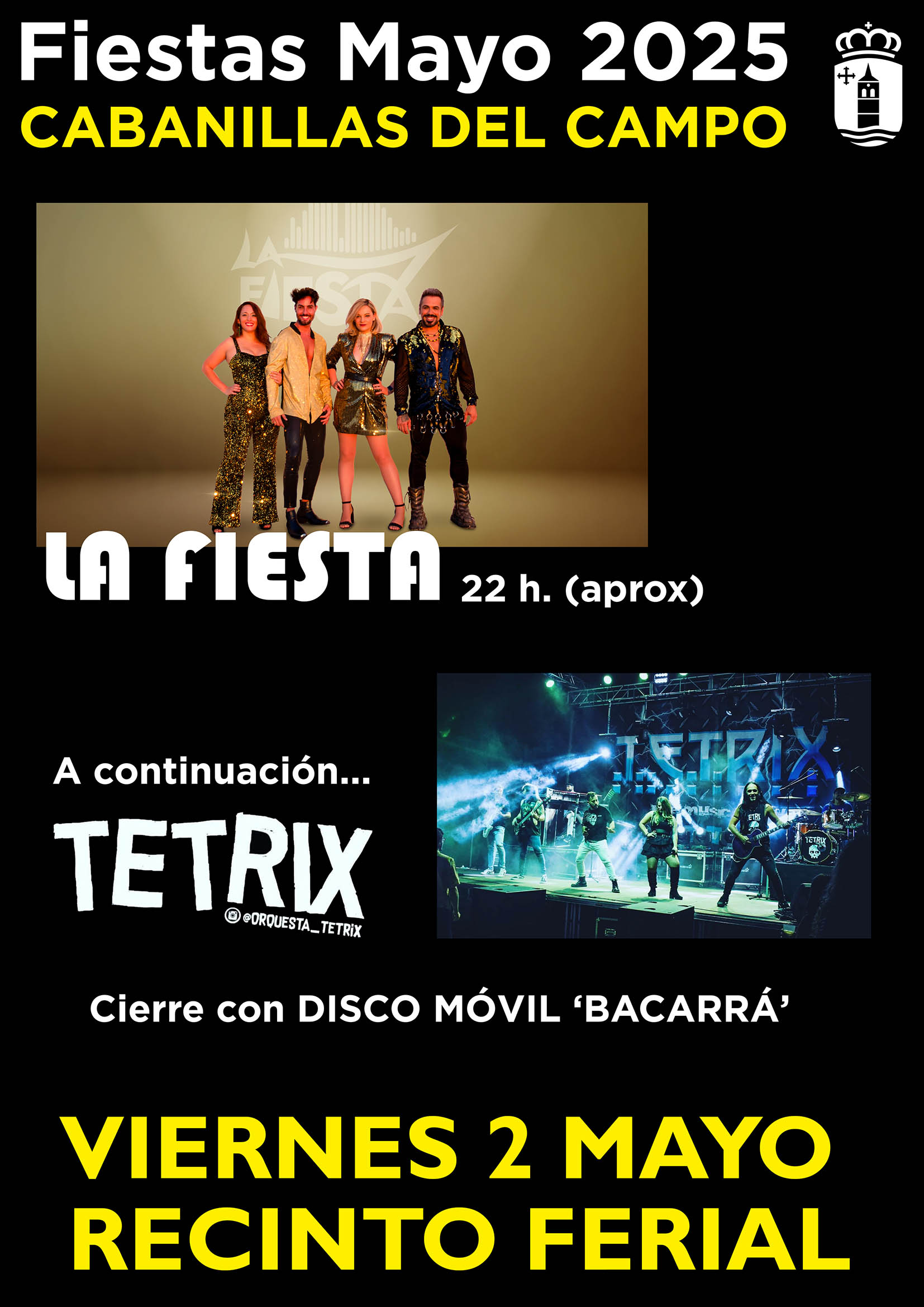 Del 2 al 4 de mayo Cabanillas celebra sus Fiestas de Mayo, en honor al Cristo de la Expiración. Más de una veintena de propuestas conforman el programa festivo, un documento que puede descargarse en PDF al pie de esta información.