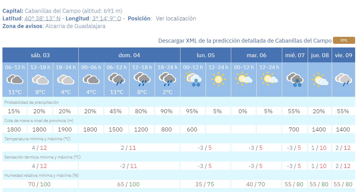Previsión de la AEMET hasta el viernes 9 de enero en Cabanillas