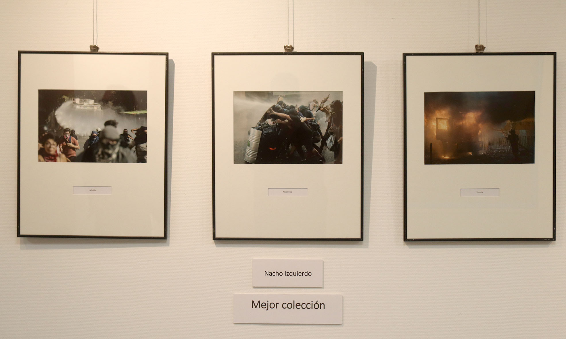 La muestra «El Poder del Agua» recoge fotos muy variadas, siempre con el líquido elemento como tema central de las composiciones. Algunos fotógrafos apuestan en sus colecciones por expresar los desastres naturales que son capaces de generar las grandes riadas y avenidas. Otros juegan con el agua vista en distintos parajes de la provincia, o con bellas estampas del agua en la naturaleza. Y alguno incluso hace un peculiar juego con imágenes de agua en estado líquido, gaseoso y sólido. El caso de la colección ganadora es muy original, ya que se trata de tres fotografías que recogen una actuación policial en unas protestas ciudadanas en Chile, en las que se utiliza el agua como mecanismo de represión.