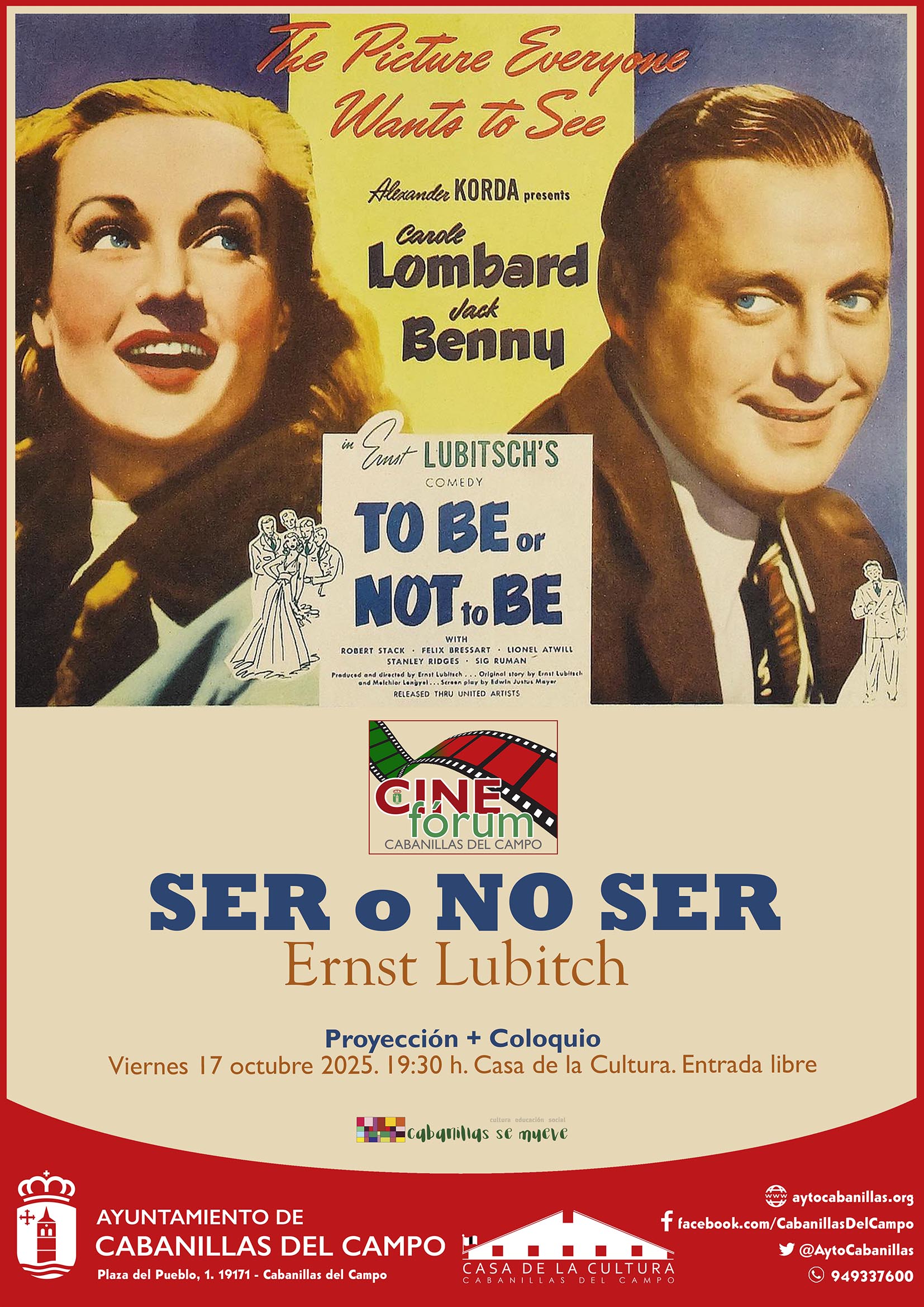 Segunda entrega del curso 2025-2026 en el ciclo Cinefórum Cabanillas, con la película «Ser o no ser», clásico del cine universal firmado por Ernst Lubitch en 1942, y una de las mejores comedias de la historia del séptimo arte.