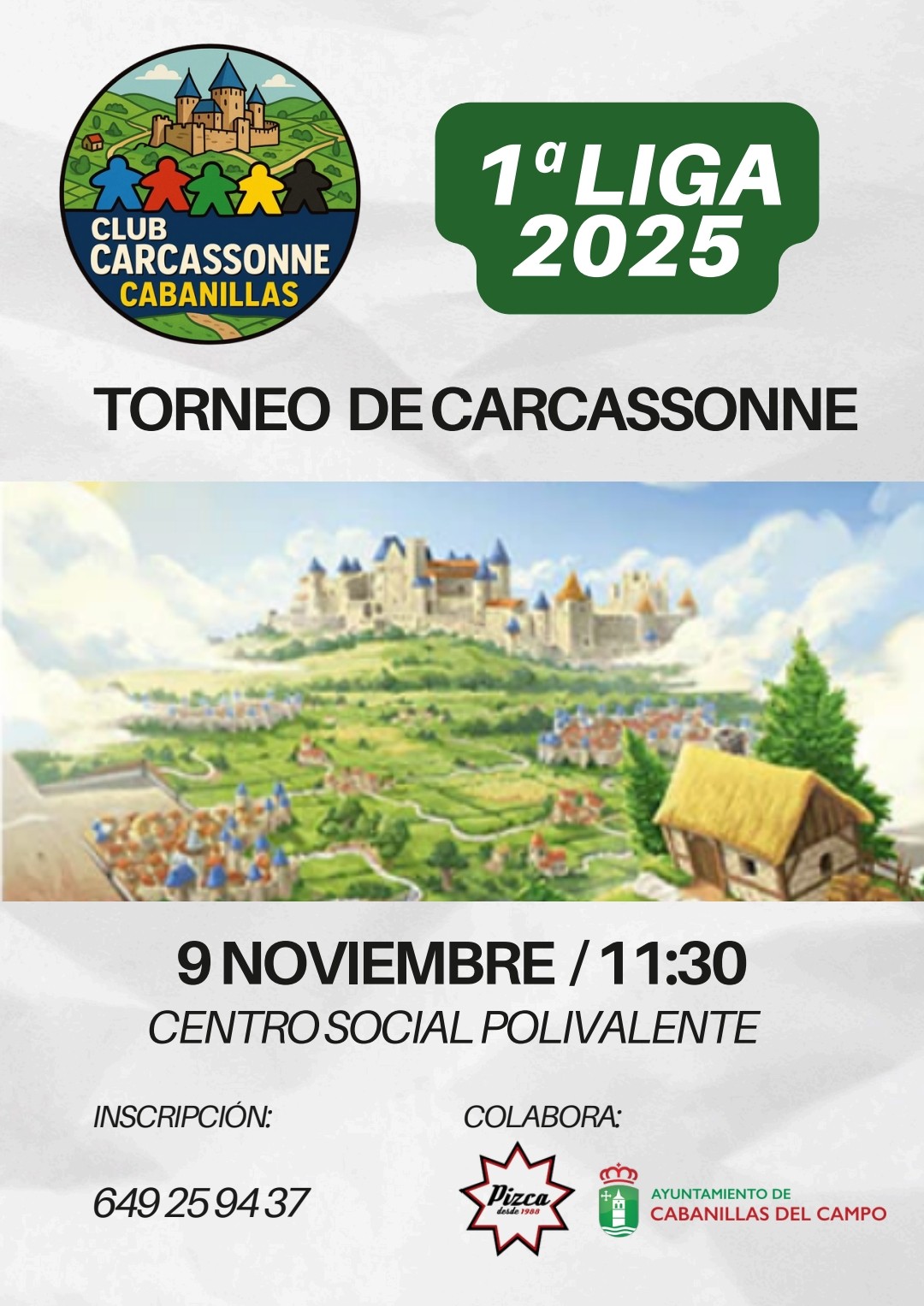 El Club Carcassonne Cabanillas, de reciente creación, organiza un nuevo torneo abierto a cualquier aficionado/a a este divertido juego de mesa de estrategia. Tras la organización del Torneo de Fiestas del pasado mes de julio, el club ha iniciado una actividad estable en la localidad, organizando torneos y sesiones de juego.