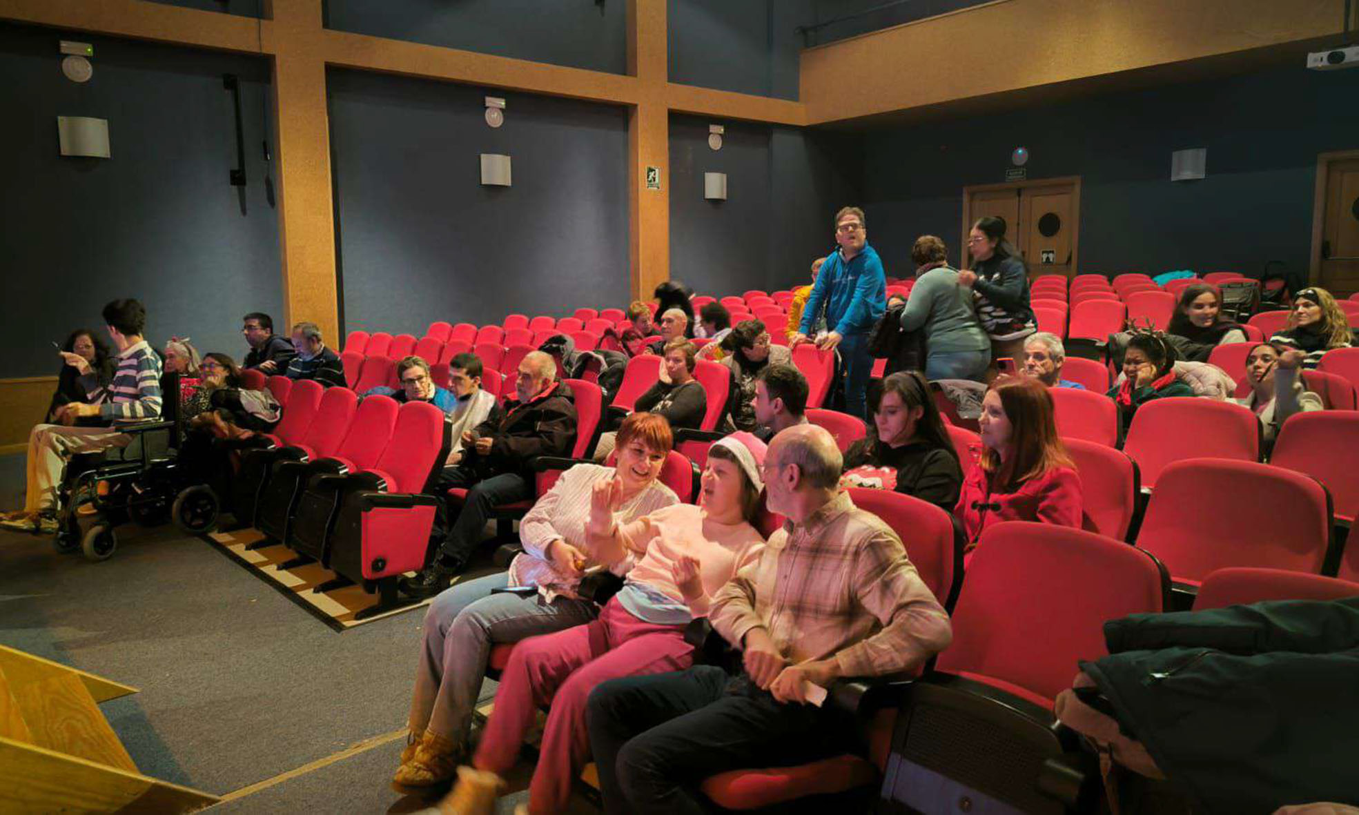 En cuanto a la gala navideña, estuvo un año más presentada por el psicólogo Rafael Martínez, una persona que trabaja diariamente con estas personas. Primero se proyectaron una serie de videos a modo de cortometrajes, grabados por los propios chicos y chicas de “Caminando” y sus familias, en los que se reflejaban distintos aspectos de las celebraciones navideñas: la cena, los preparativos, los regalos… A continuación, se han cantado multitud de villancicos, y la fiesta ha culminado con un simpático bingo benéfico en el que se sorteaba una Cesta de Navidad. La asociación también ha puesto un stand con productos de merchandising a la entrada del evento.
