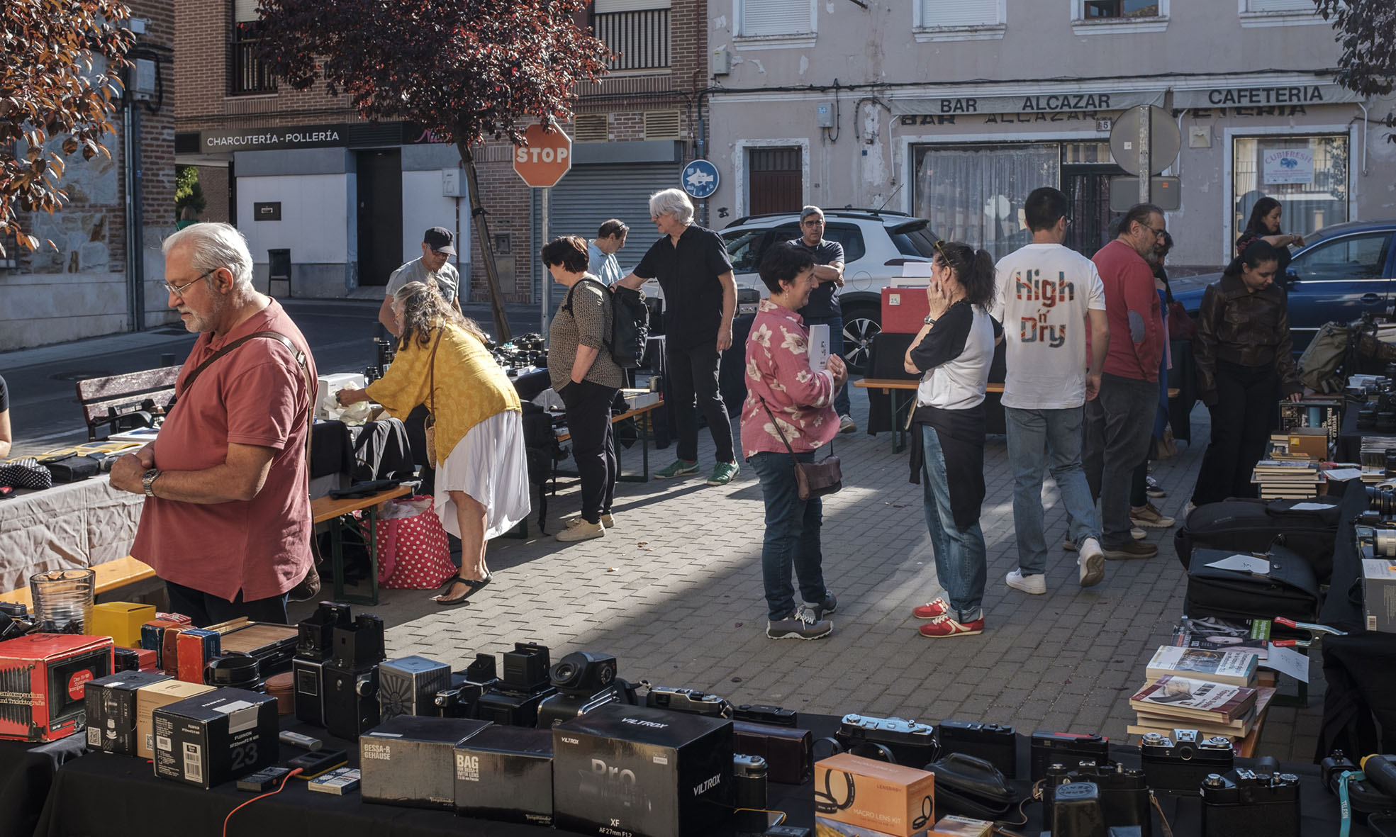 También el sábado, la céntrica y coqueta Plaza del Alguacil Julio Biosca fue un hervidero de aficionados a la fotografía, ya que allí se desplegó durante toda la jornada el «I Mercadillo Fotográfico Sostenible», una iniciativa organizada por la Escuela de Fotografía de Cabanillas «La Photoescuela», que dirige el fotoperiodista Nacho Izquierdo. La iniciativa fue todo un éxito, con exposición y venta tanto de obras de los alumnos y alumnas de la escuela como de muchas cámaras antiguas y aparatos relacionados con el mundo de la fotografía, de lo más curiosos. Desde viejas analógicas de carrete de marcas habituales como las japonesas Nikon o Canon, a las más clásicas y alemanas Leica o Rolleiflex, pasando por teleobjetivos, angulares, trípodes, proyectores o flashes. Además, la jornada contó con algunas actividades paralelas, como una charla ofrecida por Ana Ongil, de la asociación El Rincón Lento, quien habló sobre sostenibilidad y economía circular; y otra ofrecida por Nacho Izquierdo sobre técnicas y peculiaridades de la fotografía de calle.