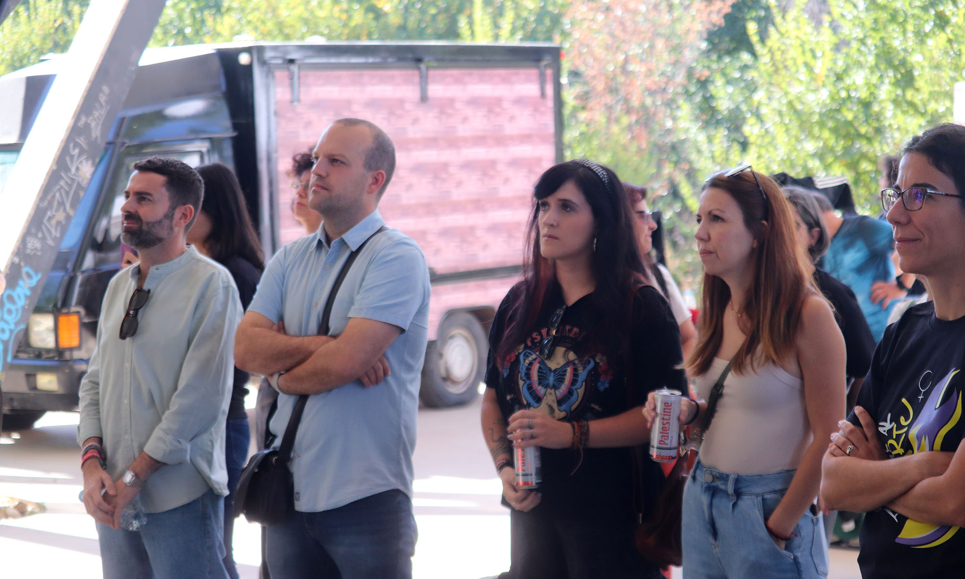 El primer teniente de alcalde, Luis Blanco; los ediles del área de Igualdad Abigail Cordero y Javier Inés; y la concejala de Juventud María Soria, asistieron a la inauguración del festival, y pudieron departir con el colectivo de organizadoras sobre esta segunda edición de «Akelarte». Cabe reseñar que el Ayuntamiento colaboró para el evento no sólo con la disponibilidad de los espacios municipales, sino también con buena parte de la logística necesaria: Desde el escenario y los equipos de sonido y proyección de imágenes, a las carpas, bancos y mesas en los que se dispusieron los diferentes stands.