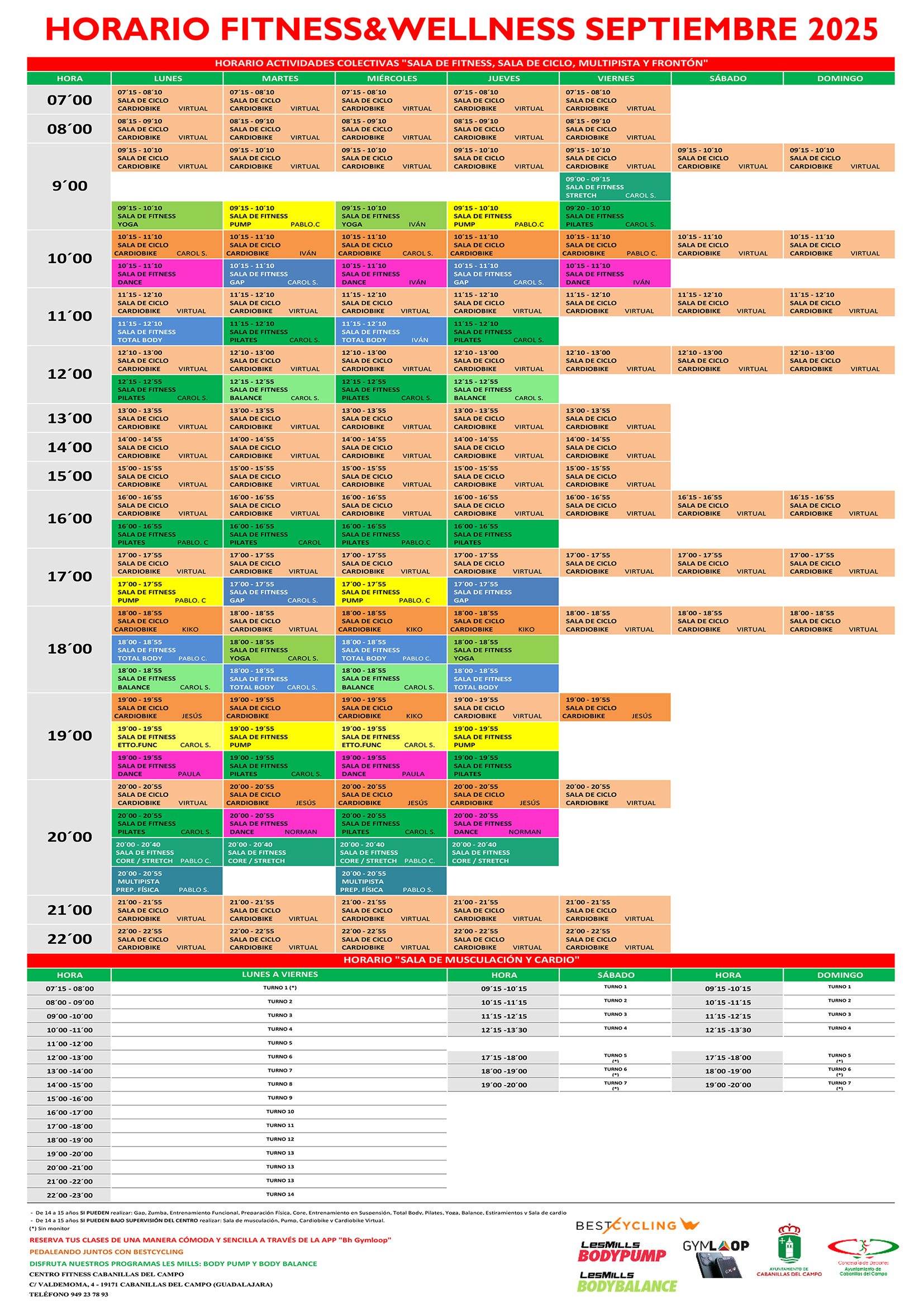 - Los horarios de las actividades de los adultos podrán ser revisados mensualmente, en función de la demanda de la actividad.
