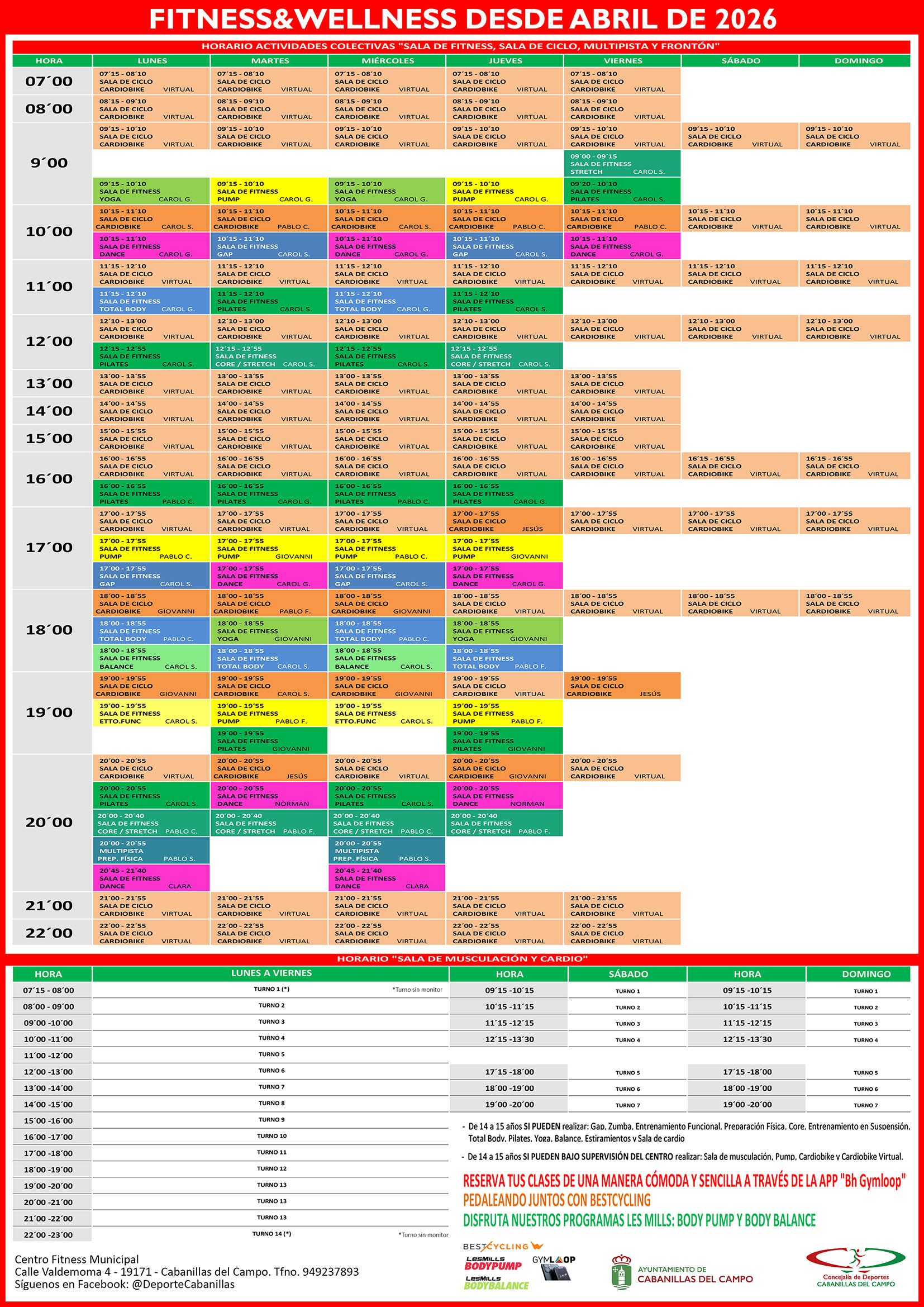 HORARIO FITNESS & WELLNESS DESDE ABRIL DE 2026