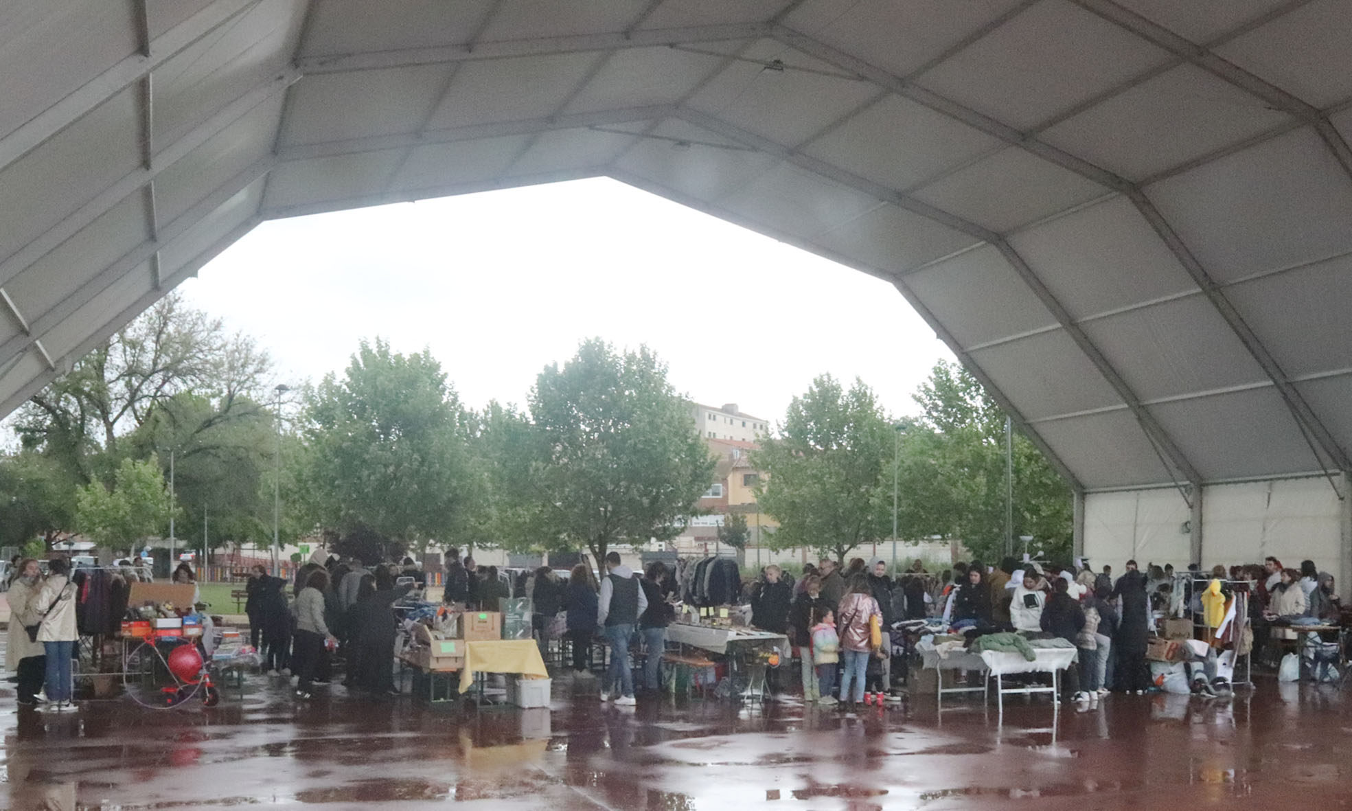 A pesar de la lluvia, la carpa del Ferial permitió el desarrollo de la 14ª edición del mercadillo cabanillero de productos de segunda mano